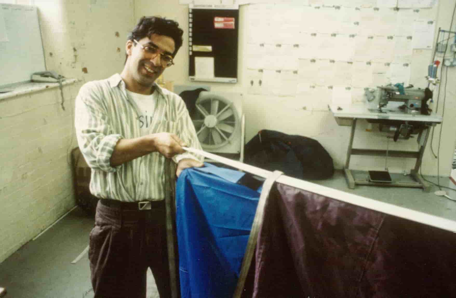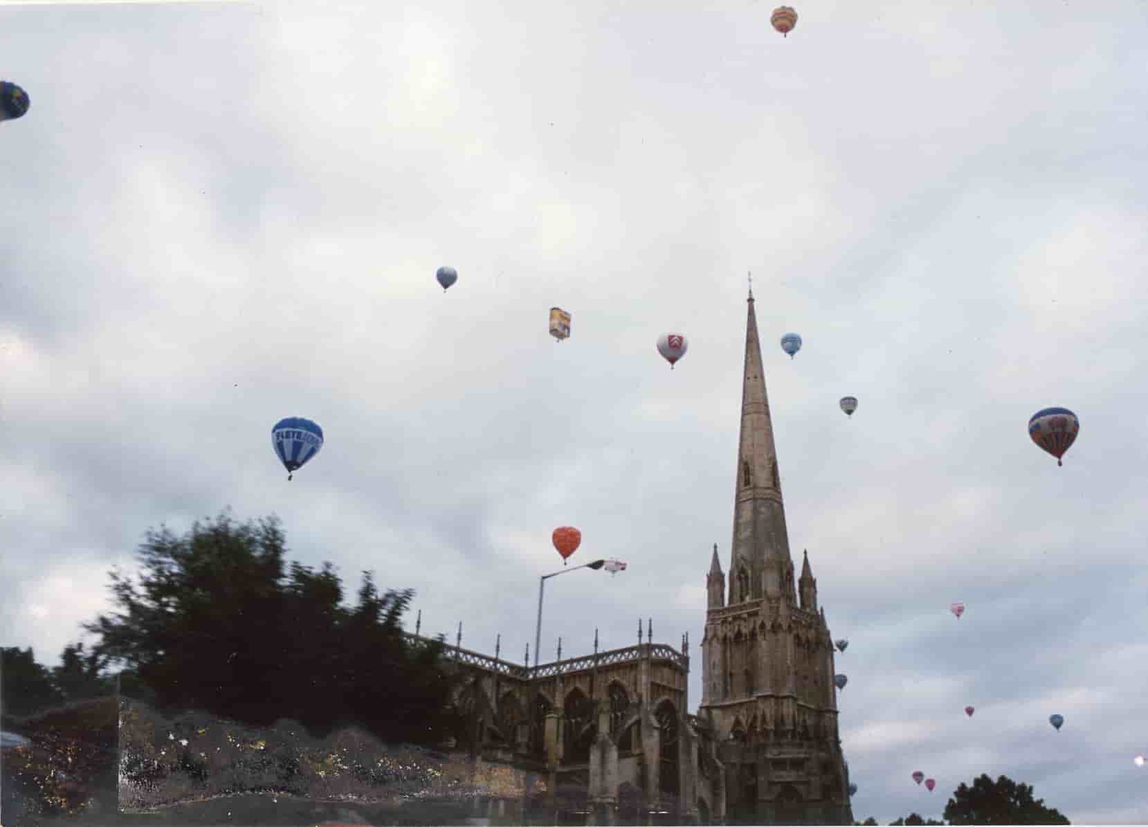 Training for hot-air balloon inspection certificate at Cameron Balloons, UK, 1990